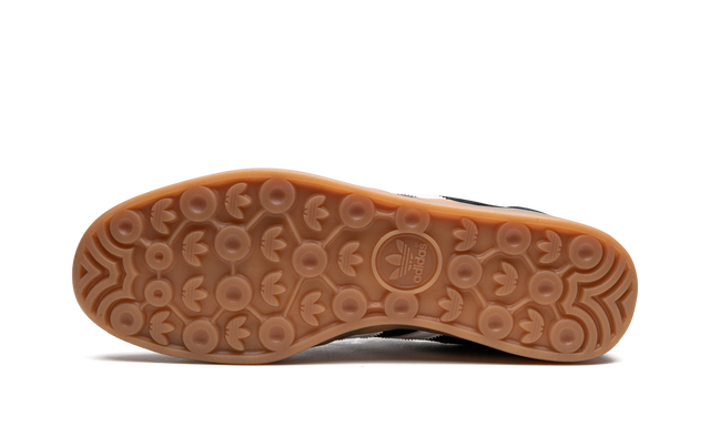 The rubber outsole, traditionally in gum, adds a retro flair, creating a subtle contrast to the dark upper while enhancing the minimalist aesthetic. Accented with a gold logo, this design exudes sophistication while staying true to the original Gazelle essence.
